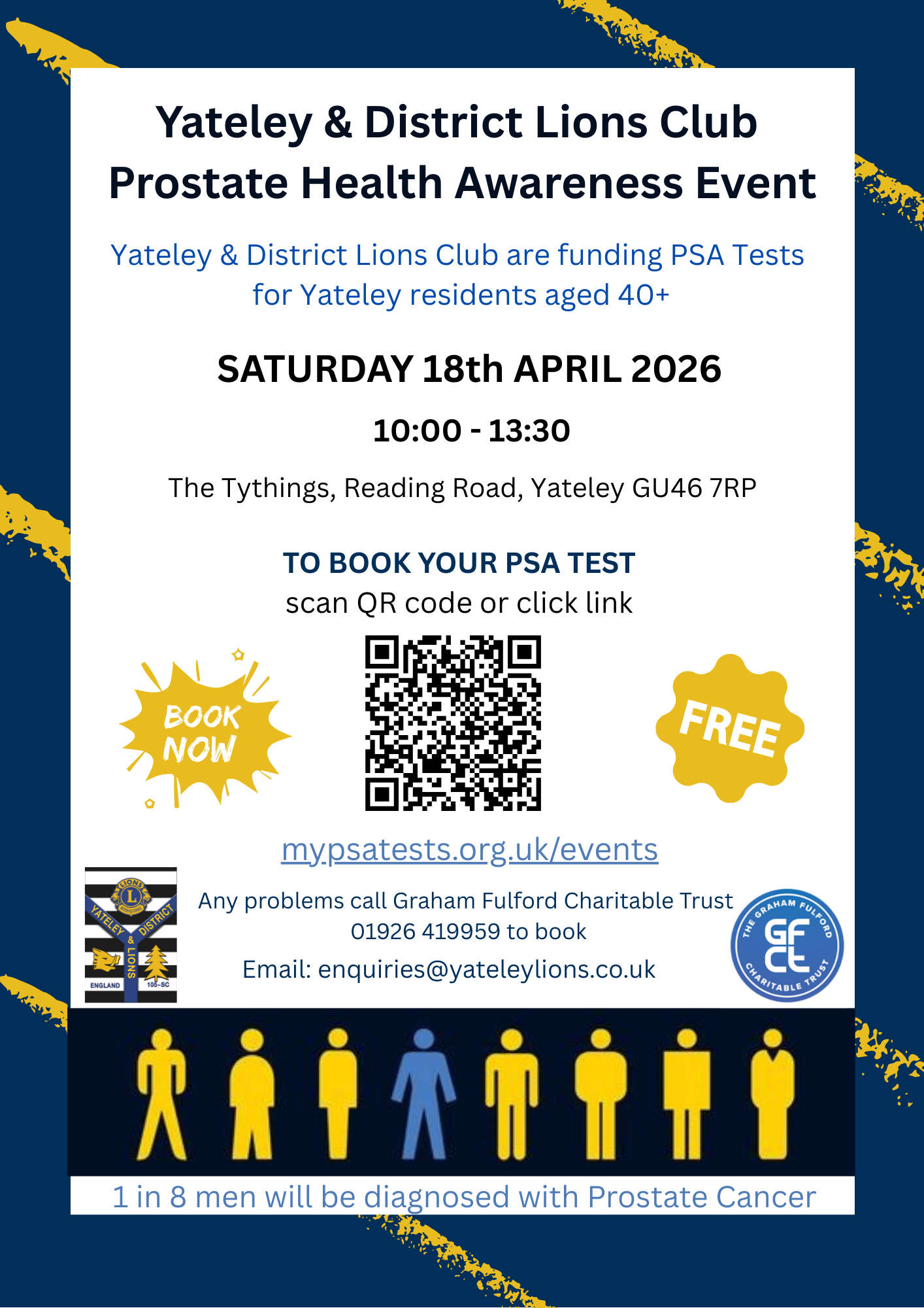 Yateley & District Lions Club - Prostate Health Awareness Event: Saturday 18th AprilApril 18th 2026